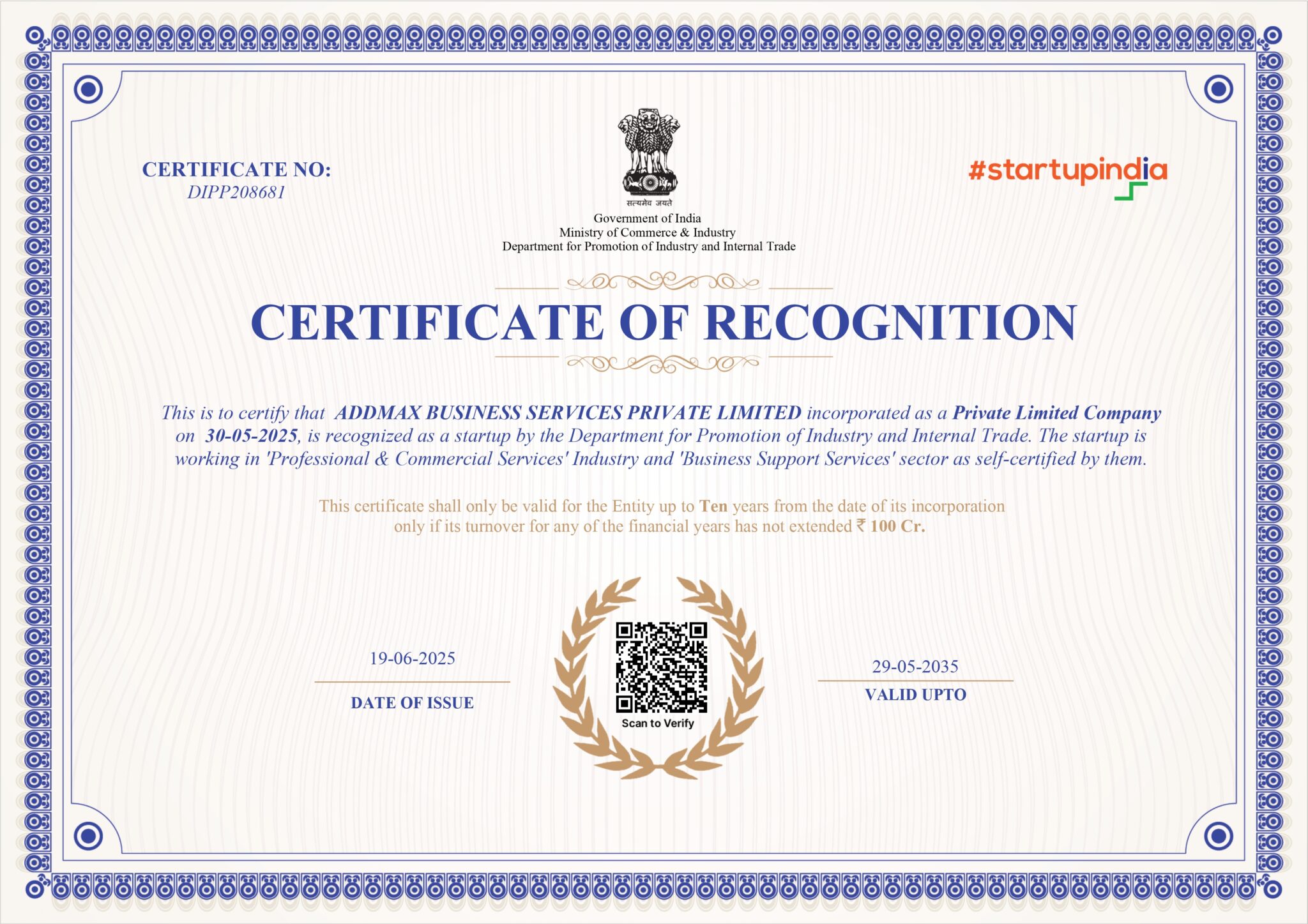 At AddMax Business Services, we help startups and small businesses access income tax benefits, Startup India registration, government grants, funding opportunities, and intellectual property rights through the Indian Government’s Startup India Scheme.
